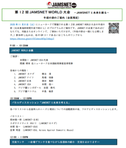 在留邦人のための勉強会「海外に暮らす私たちの安全、生活、健康、医療」(第10回JAMSNETワールド会議午後の部) がドイツ・デュッセルドルフで開催されます